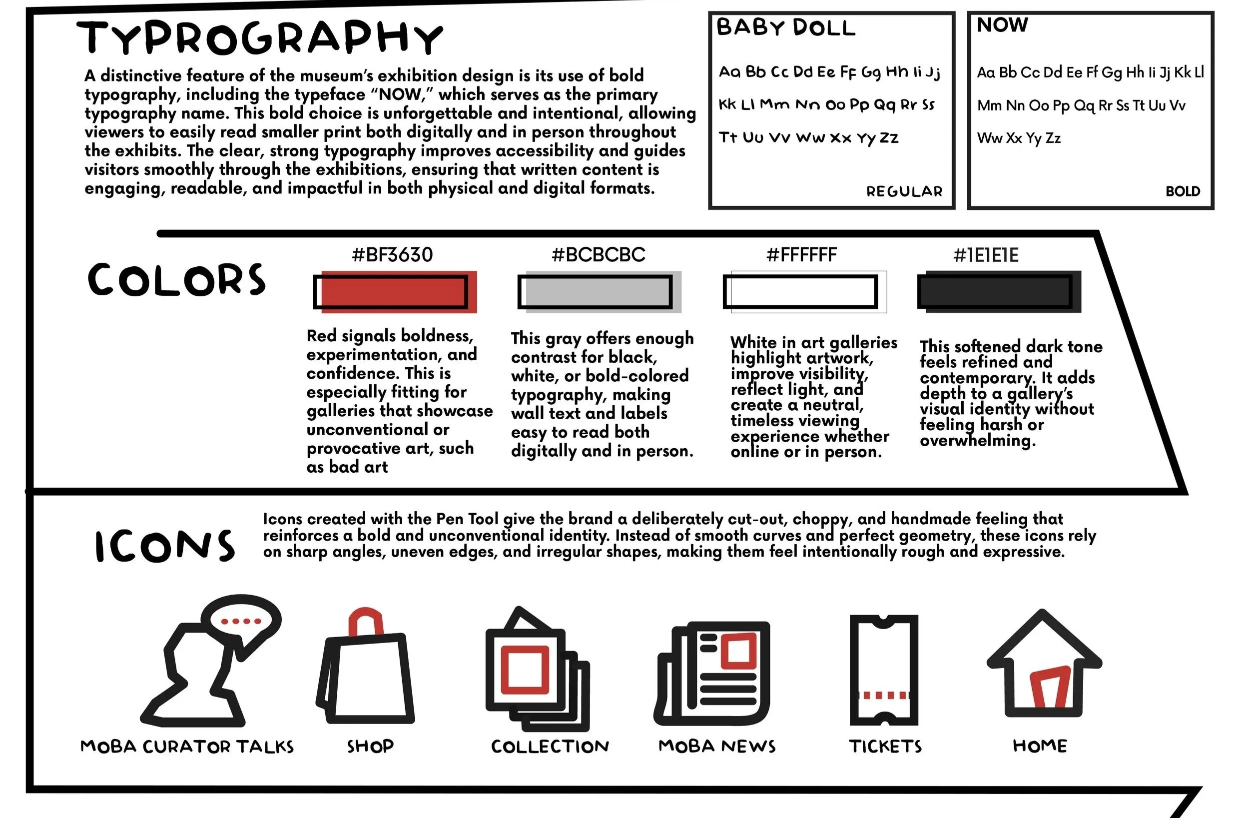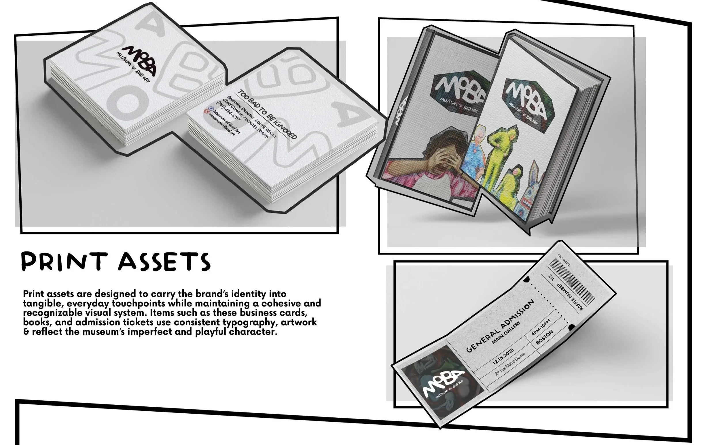 This is a branding project for the Museum of Bad Art. This project shows a modern brand uplift, from logo to consistent brand guidelines.