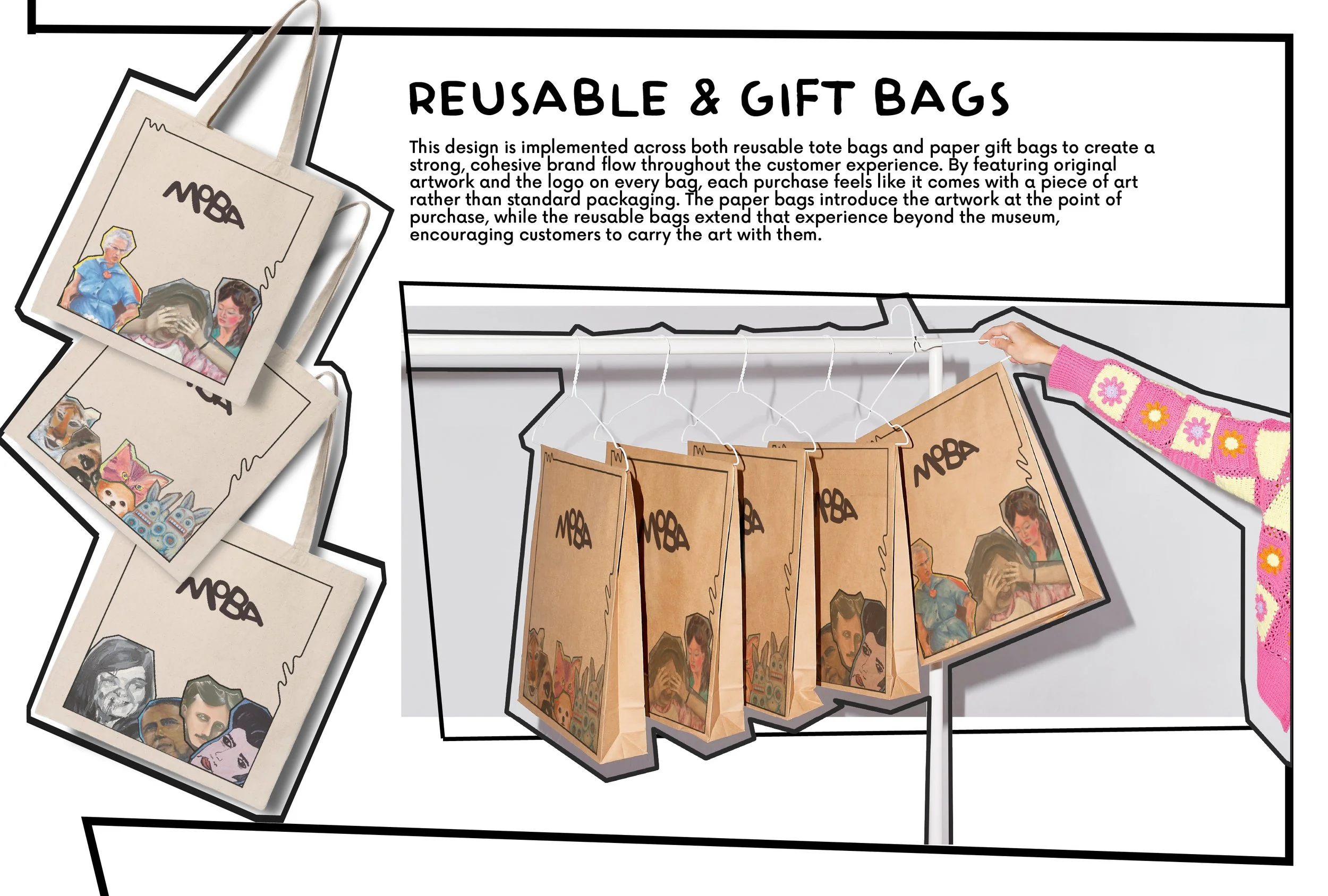 Branded reusable bags for in-store and out of store purchase’s support the strength of the brand, providing provocative marketing.